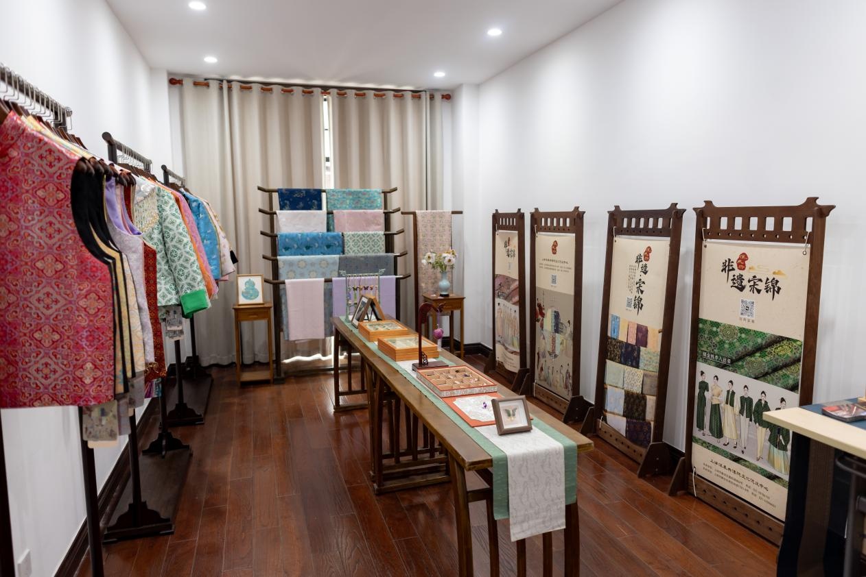 汉未央专注中华传统文化传承,本次展出宋锦服装及文创,以古法织造工艺打造葫芦项链、吉祥挂件等,将祥云、瑞草等传统纹样融入日常,传递东方美学。