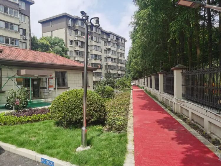 小区改造后的绿化和健身跑道