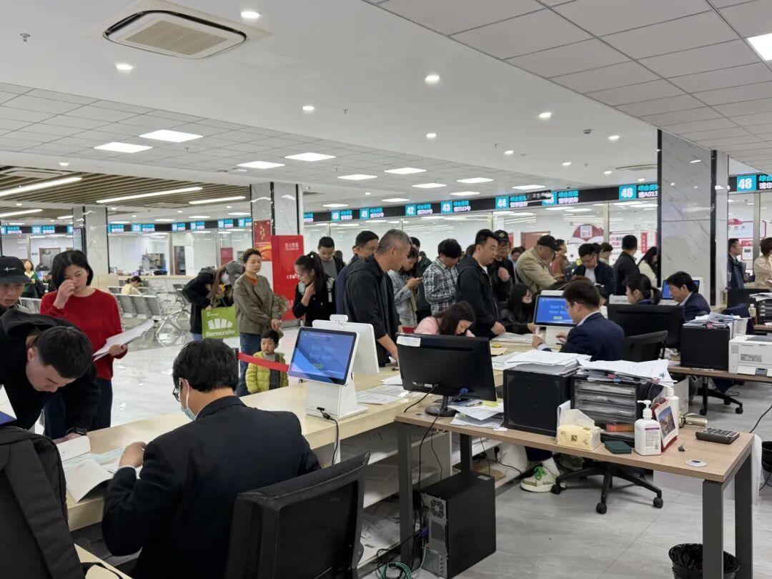 上午11点,记者在青浦区房地产交易中心看到,引导台前咨询业务、询问办理证件材料的市民络绎不绝。各综合受理窗口前,市民等待叫号,办理相关业务。记者随机采访了一位正在办理业务的市民刘扬,他笑着说:“新政策对我们新购房的人太友好了,贷款政策和税收政策都有优化,公积金比例也提高了。市场能活跃起来,对我们购房者来说肯定是好事。我资料都准备好了,取号办理,整个过程挺快的,也就20分钟左右,效率挺高。”