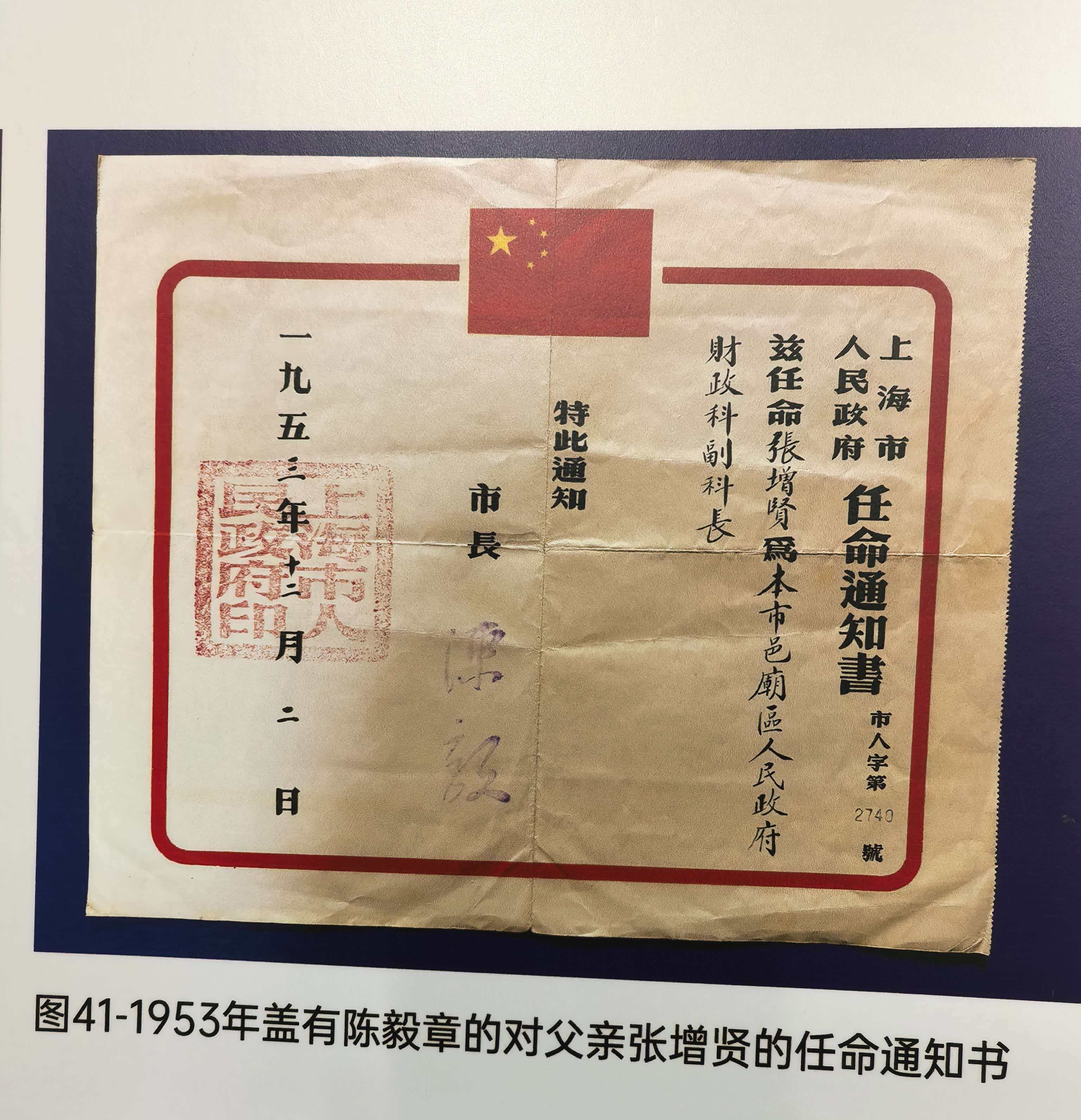 张旻站在展板前,指着父亲的任命书说:“这是盖有陈毅市长章的对我父亲的任命通知书。”语气中满是自豪。1953年2月2日,新中国百废待兴之际,这份来自上海市人民政府的任命,不仅是对一位革命干部的信任,更是一个时代对建设者的召唤。