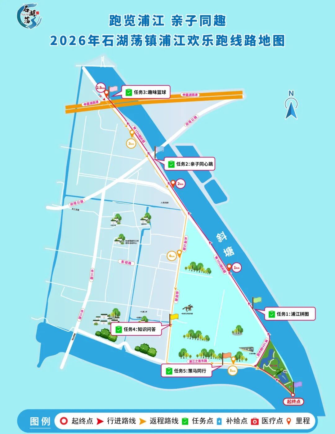 5 公里江畔跑道,5 个趣味闯关任务,