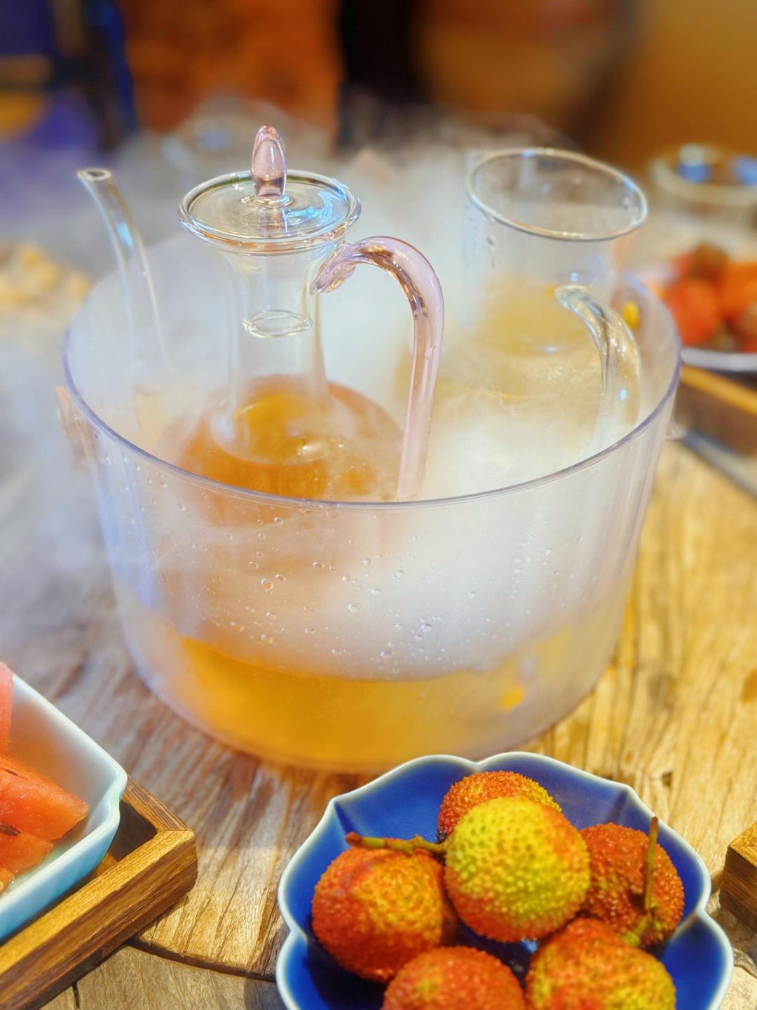 特色餐饮:围炉冰茶与冷泡茶。