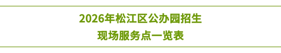 1.符合入公办园条件的适龄幼儿家长,没有网上报名或网上验证不通过的可根据“2026年松江区公办园、普惠性民办园招生新生信息分类及安置说明表”(附件1),携带相关材料按房产证件地址在规定时间内到上述“现场服务点”进行信息确认与材料验证。