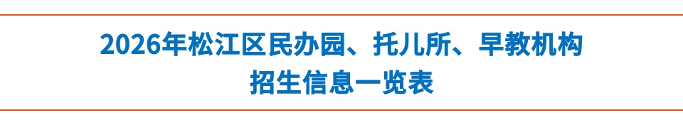 民办园托班招生详见各园招生简章,2026年开设托班的民办园详见《2026年松江区民办园、托儿所、早教机构招生信息一览表》(附件4)中“招收年龄”含3岁以下的相关园所。