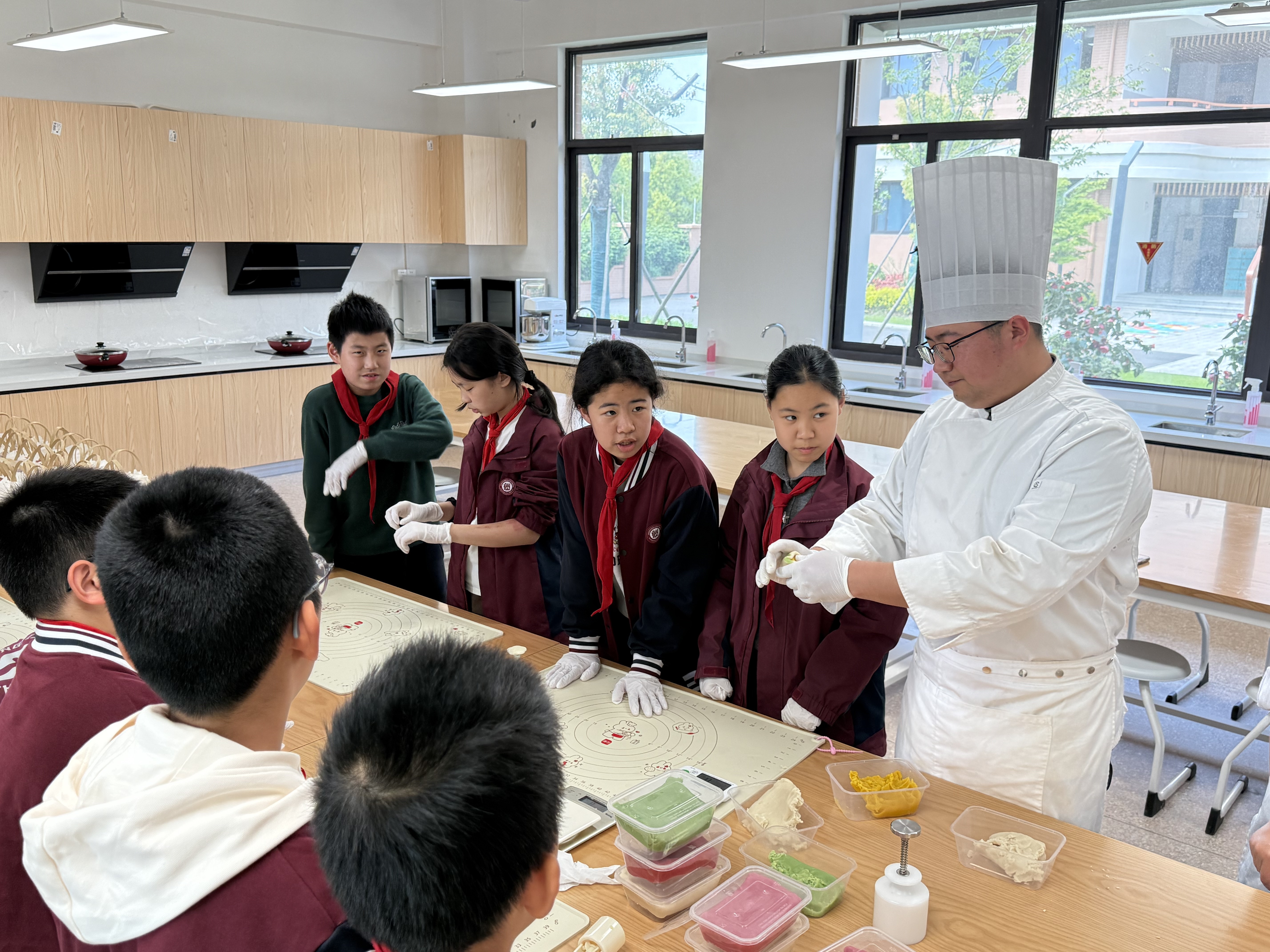 本届牡丹文化节以“品、赏、承、诵”为四大篇章,活动内容丰富多元、趣味盎然。在学校膳食坊,师生变身“美食匠人”,揉面塑形、巧手点缀,将牡丹元素融入点心制作。劳动实践与食育文化在一揉一捏间悄然浸润,香甜的牡丹主题点心承载着师生对传统文化的热爱。移步校园牡丹园,姚黄魏紫、姹紫嫣红,各色牡丹竞相吐艳,师生们漫步花间,或驻足细赏花瓣纹理,或合影定格春日美景。