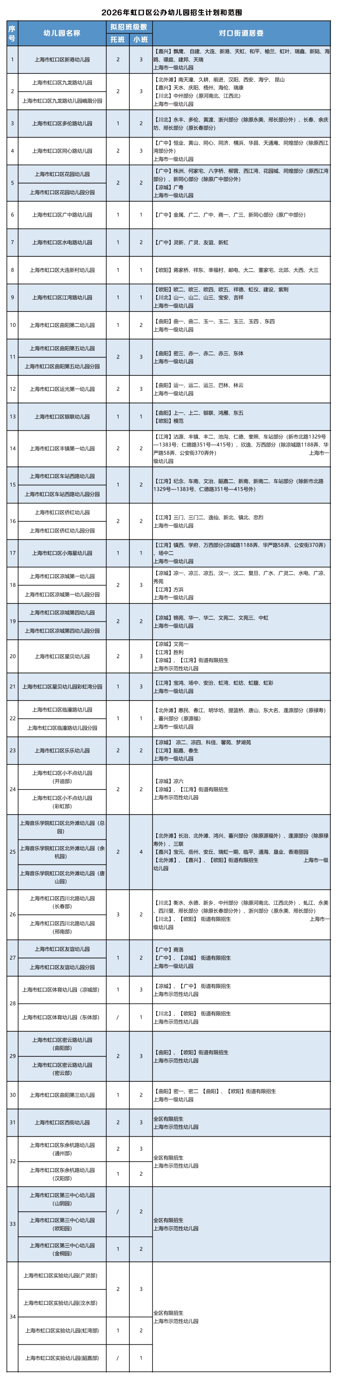 家门口的优质学前教育资源已就位!2026年虹口区幼儿园对口地段信息正式发布,助力适龄幼儿顺利入园、就近入学。