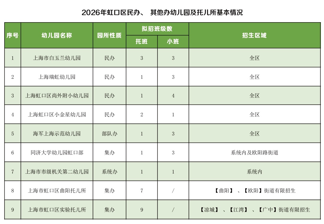 点击查看:虹口区教育局关于2026年虹口区学前教育阶段适龄幼儿入园工作的实施意见