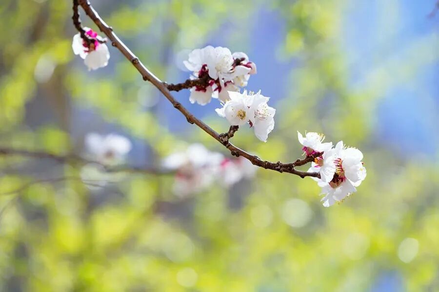 杏花是蔷薇科。那些好看的花,那些好吃的果,梅、桃、李、杏、梨、海棠、玫瑰、草莓、苹果、樱桃、山楂,都是蔷薇科。没有蔷薇科,就没有春天,也没有幸福的生活。在蔷薇科中,梅花在严冬中报春,杏花则明明白白宣告了春天已经到来。“春色满园关不住,一枝红杏出墙来”,杏花开了,春天一下子就浓了。“乱点碎红山杏发,平铺新绿水苹生”,每次看到这两句,我就想起新疆那漫山遍野的野杏花,谁要约我去看,抓紧,已经时不我待了。“春日游,杏花吹满头”,人与杏花,来做个春天的对撞机,多好。