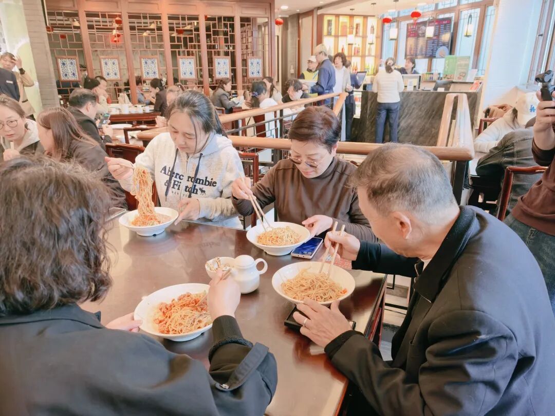 中午时分,店内座无虚席,不少老食客专程前来打卡。“好吃呀,每年都会来。等会儿还要再打包一份银芽三丝闷蹄冷面回去。” 一位市民笑着说,焖蹄软糯入味、冷面筋道爽滑,是春日必吃的本帮美味。当天有些细雨,店里的外卖单量也直线上升,不少周边白领选择带送餐上门。