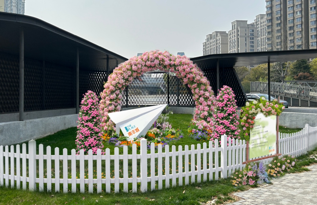 作品以月季花境为核心意象,打造“月月兜春风”主题场景。花为媒,兜风为线,融合龙沙宝石、夏洛特夫人、安吉拉等优秀月季品种,以瀑布般的拱门花海,营造一处春日闻香之旅,让逛公园和逛商场都变成专属上海的一条温柔路径。