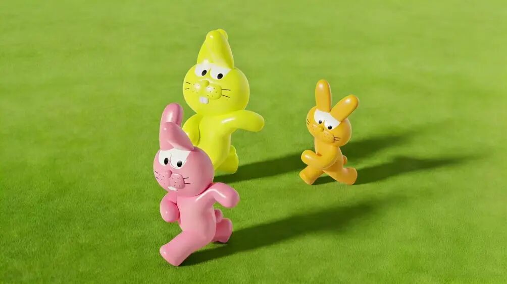 兔子常被视为春之灵物,作品以现代、幽默、拟人的兔子形象,重新诠释了“春兔戏花”的美好意象,象征着春日里的生机与活力。桃子妈妈粉噗噗,李子爸爸黄灿灿,杏子孩儿橙莹莹,它们化身为桃花、李花、杏花之精灵,邀请大家一同陶醉在春日花丛之中。