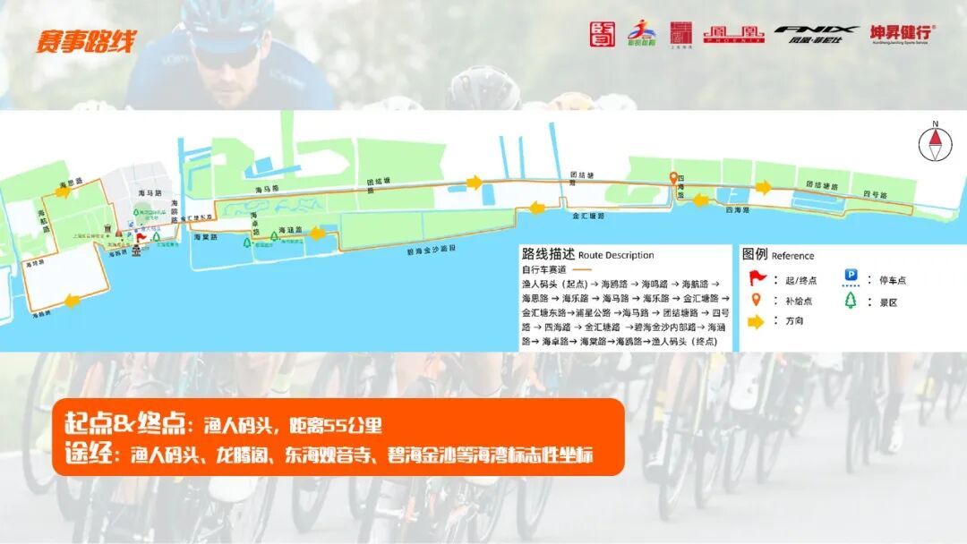 2026年4月19日7时00分至13时00分,渔人码头(起点)——海鸥路(海航路至金汇塘路)——海鸣路(海鸥路至海航路)——海航路(海鸣路至海思路)——海思路(海航路至海乐路)——海乐路(北段)(海思路至海马路)——海马路(海乐路北段至海乐路南段)——海乐路(南段)(海马路至金汇塘路)——金汇塘路(海乐路至海鸥路)——金汇塘东路(海鸥路至浦星公路)——浦星公路(金汇塘东路至海马路)——海马路(浦星公路至农商路)——团结塘路(补给站)(农商路至四号路)——四号路(团结塘路至四海路)——四海路(四号路至团结塘路)——金汇塘路(团结塘路至碧海金沙内部路)——碧海金沙内部路(金汇塘路至海涵路)——海涵路(碧海金沙内部路至海卓路)——海卓路(海涵路至海棠路)——海棠路(海卓路至海佳路)——海鸥路(金汇塘路至渔人码头)——渔人码头(终点)。