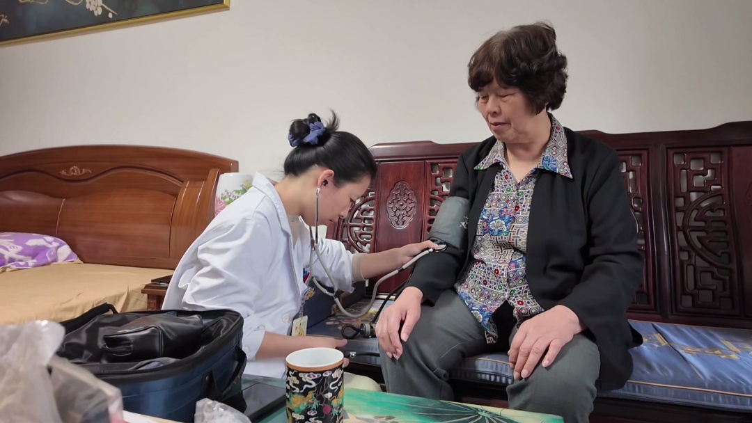 医生很快上门问诊、量血压、送药,及时为老人排忧解难。对于钟阿婆来说,家庭医生为她提供了不少便利:“这个家庭医生对我讲起来是绝对放心。看毛病老方便,不像过去跑大医院排队要排老长时间。现在走到地段医院,近呀!找家庭医生就能解决。有时候不懂,打电话她也跟你解释,吃啥药、帮你配好,多方便!”