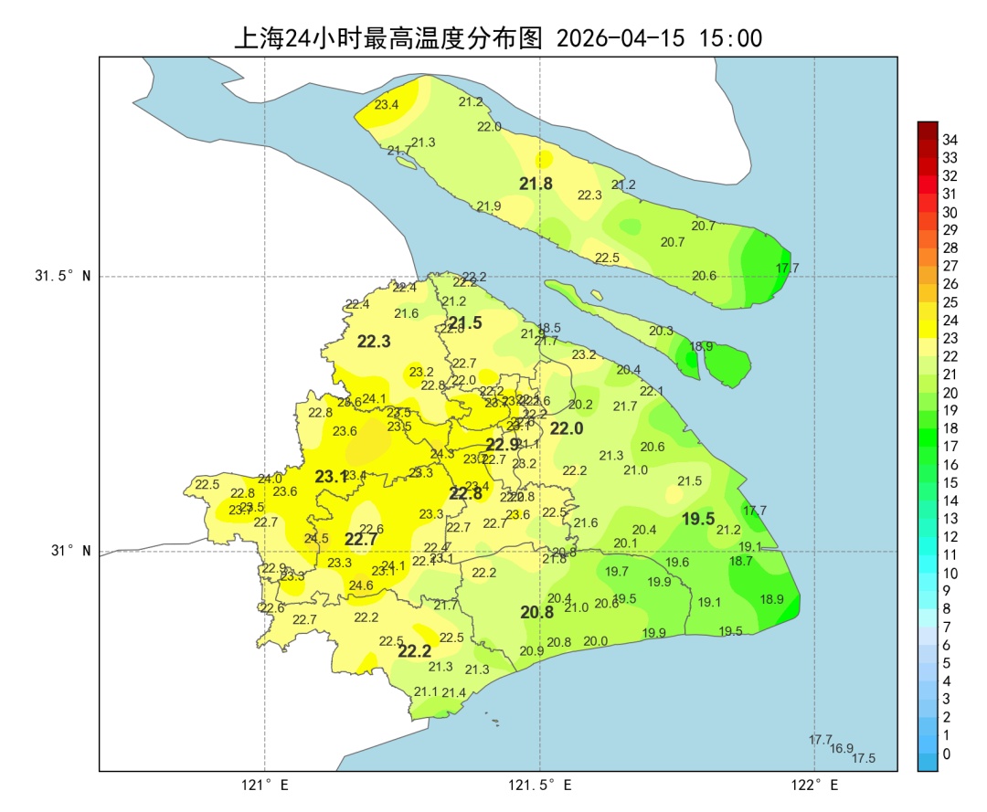 今日蓝天白云重回申城,气温回升,湿度略有下降,天气比前几天清爽一些,闵行15~22℃。