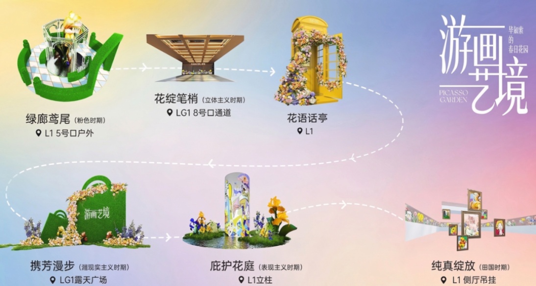 “芬芳满天物”(4.10-5.17)以玫瑰为核心,打造沉浸式锈色玫瑰花园,玫瑰主题展览、消费活动拉满浪漫氛围。