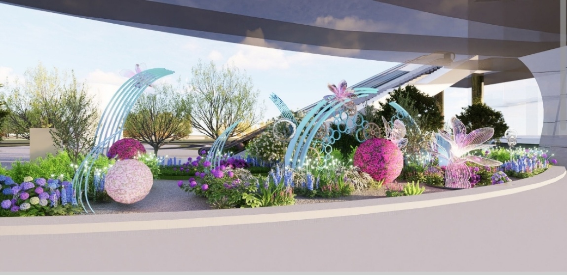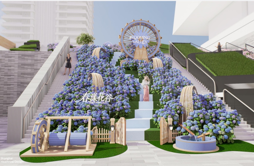 陆家嘴中心下沉广场“春漾花谷”主题装置效果图