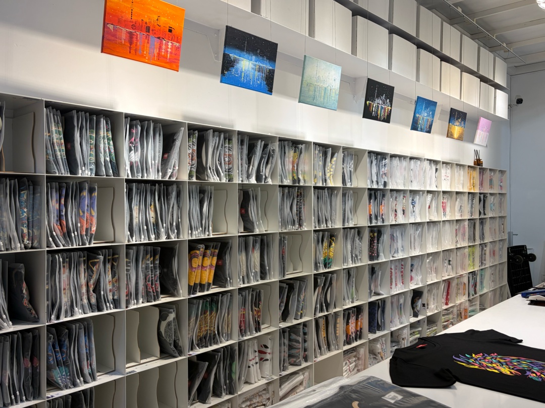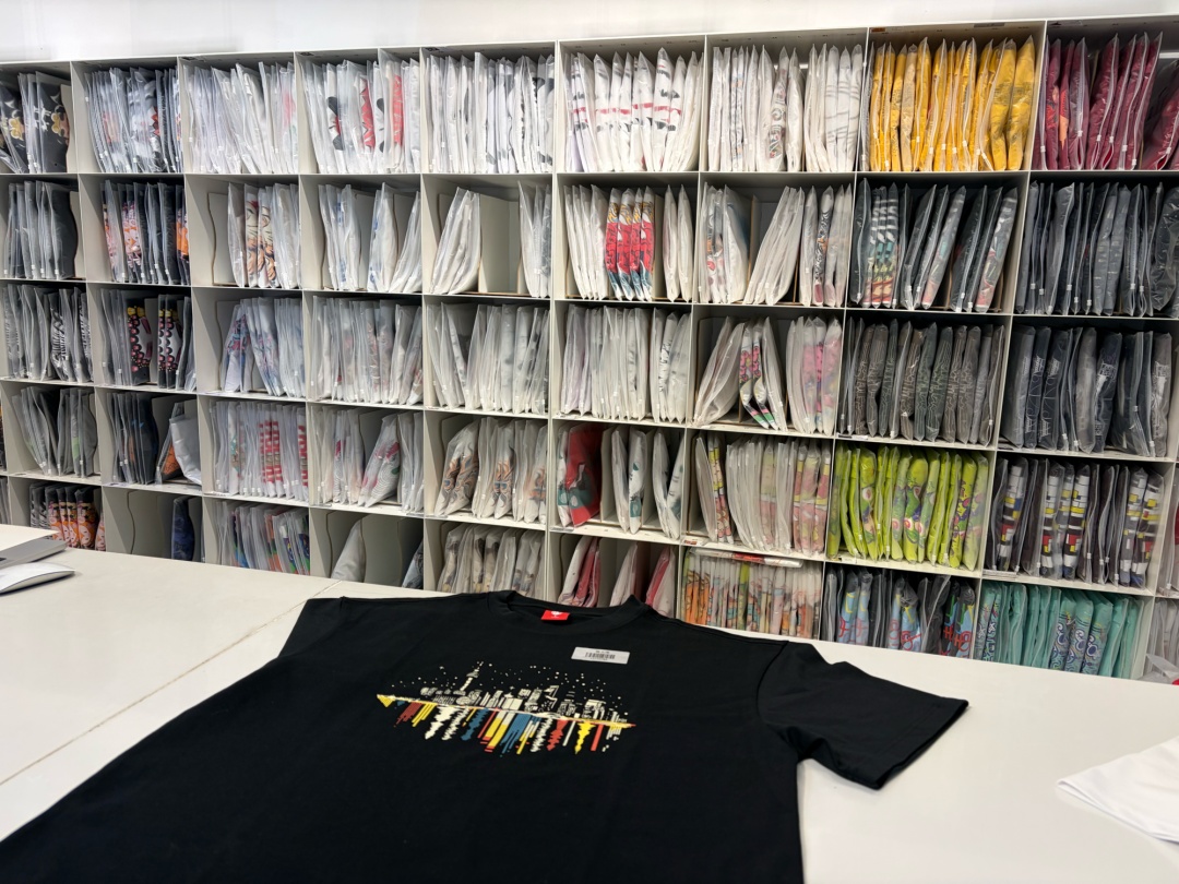推开田子坊的路上海新店,不像服装店,更像一座微型美术馆。满墙的T恤按主题陈列:十二生肖系列里,辰龙化作几何线条盘旋在胸口;上海系列把石库门、东方明珠用极简黑白勾勒;国潮区的悟空、哪吒,带着赛博朋克的酷感……截至2026年,品牌已推出超500款原创设计,每一款都有商标或版权,背后是来自中国、日本、新加坡的设计师团队,耗时一个月打磨的8道创作流程。
