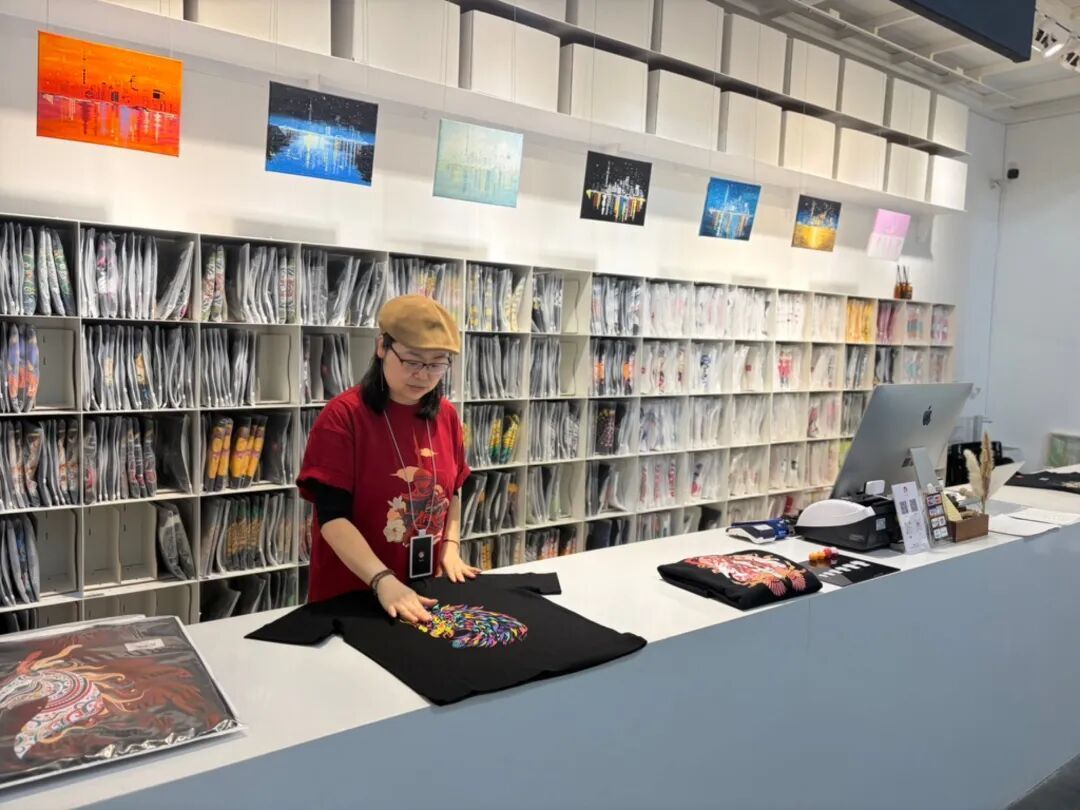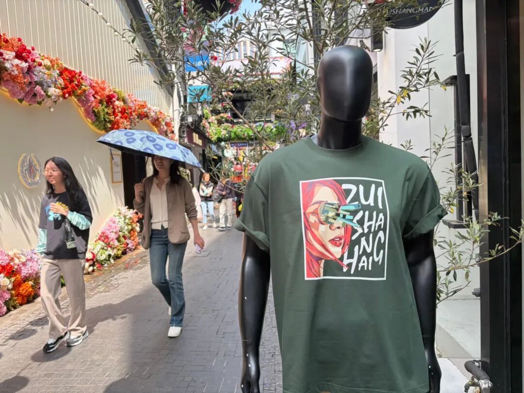 如今的路上海,早已不只是卖T恤。品牌还推出了帆布袋、马克杯等文创产品,甚至接受企业定制——把中国元素印在员工服上,成了不少公司的“文化名片”。2025年升级的新店,特意增加了艺术展示区,游客可以对照墙上的设计稿选款,还能看到设计师的手绘原稿,仿佛走进一场“T恤设计展”。
