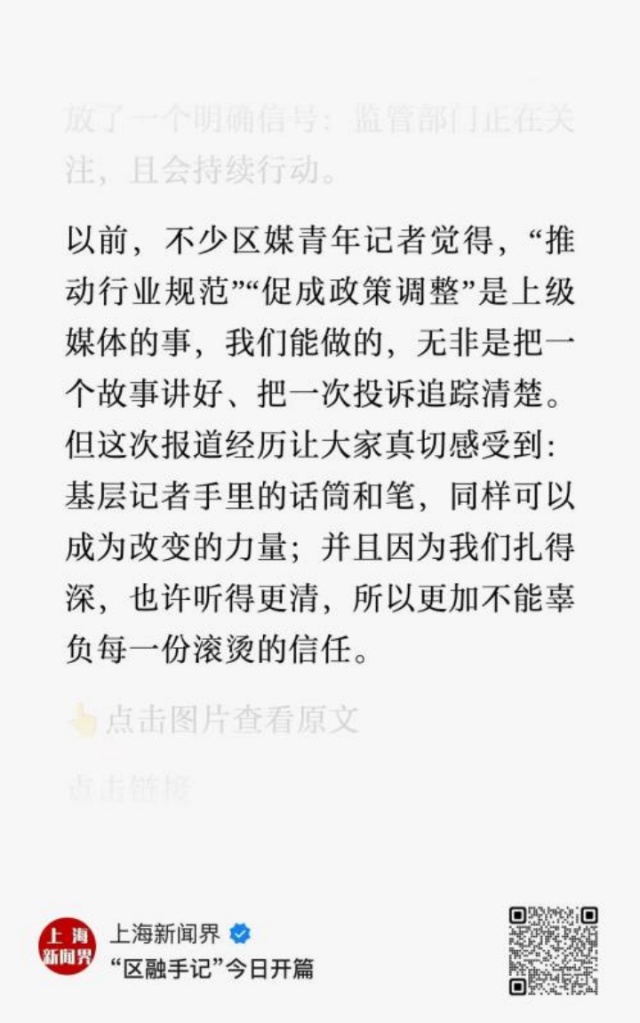 手记结尾特别提到:基层记者手里的话筒和笔,同样可以成为改变的力量;并且因为我们扎得深,也许听得更清,所以更加不能辜负每一份滚烫的信任。