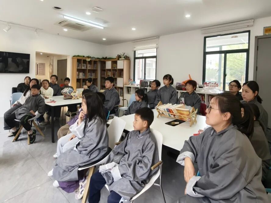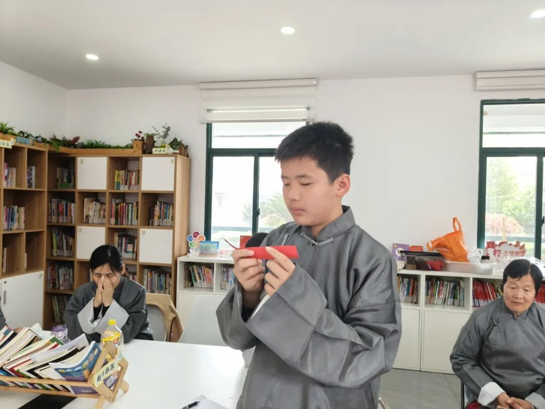 “男之投身于革命,非为个人之升官发财,实鉴于人民之受痛苦而谋其解放也,虽牺牲,于心亦愿也!”奉贤第一位革命烈士沈志昂的家书字字千钧,令不少孩子家庭为之动容。活动现场,多位家长主动分享了祖辈亲历的革命往事,让红色记忆从书本走进生活,融入真实的家庭讲述。在随后的亲子讨论环节中,大家围绕“革命时期的牺牲与当今时代的奉献”展开对话,孩子们在家长引导下,稚嫩而认真地畅谈生命意义与责任担当。