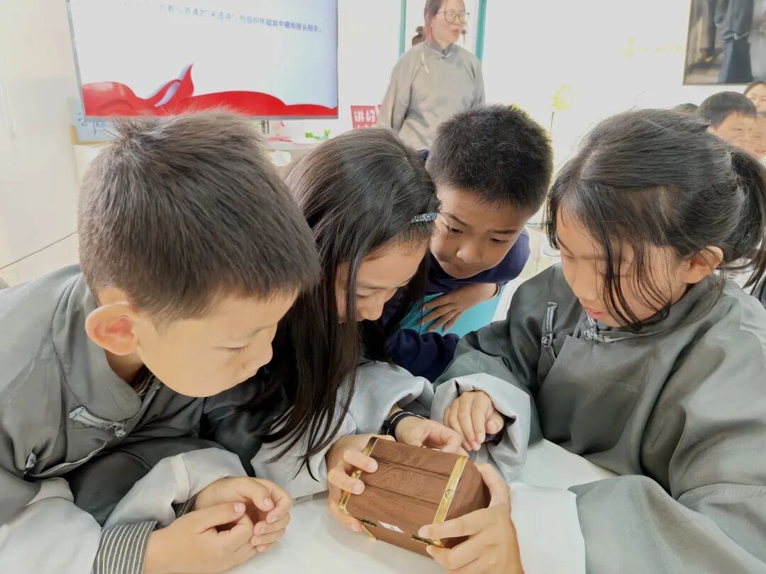 随后,各组根据箱内任务卡指引,依次完成破译加密信件、寻找地下党组织接头人、确定曙光中学为接头地点三项挑战。在破解李主一被捕前传递的关键任务后,现场讲解员深情讲述了李主一创办曙光中学、播撒革命火种的红色故事,那段波澜壮阔的历史在孩子们心中渐渐清晰起来。