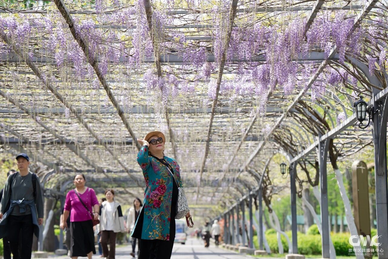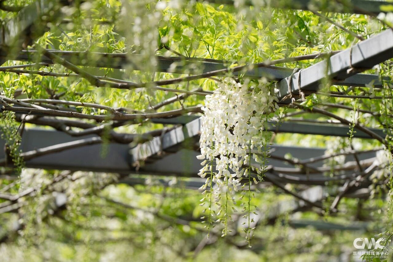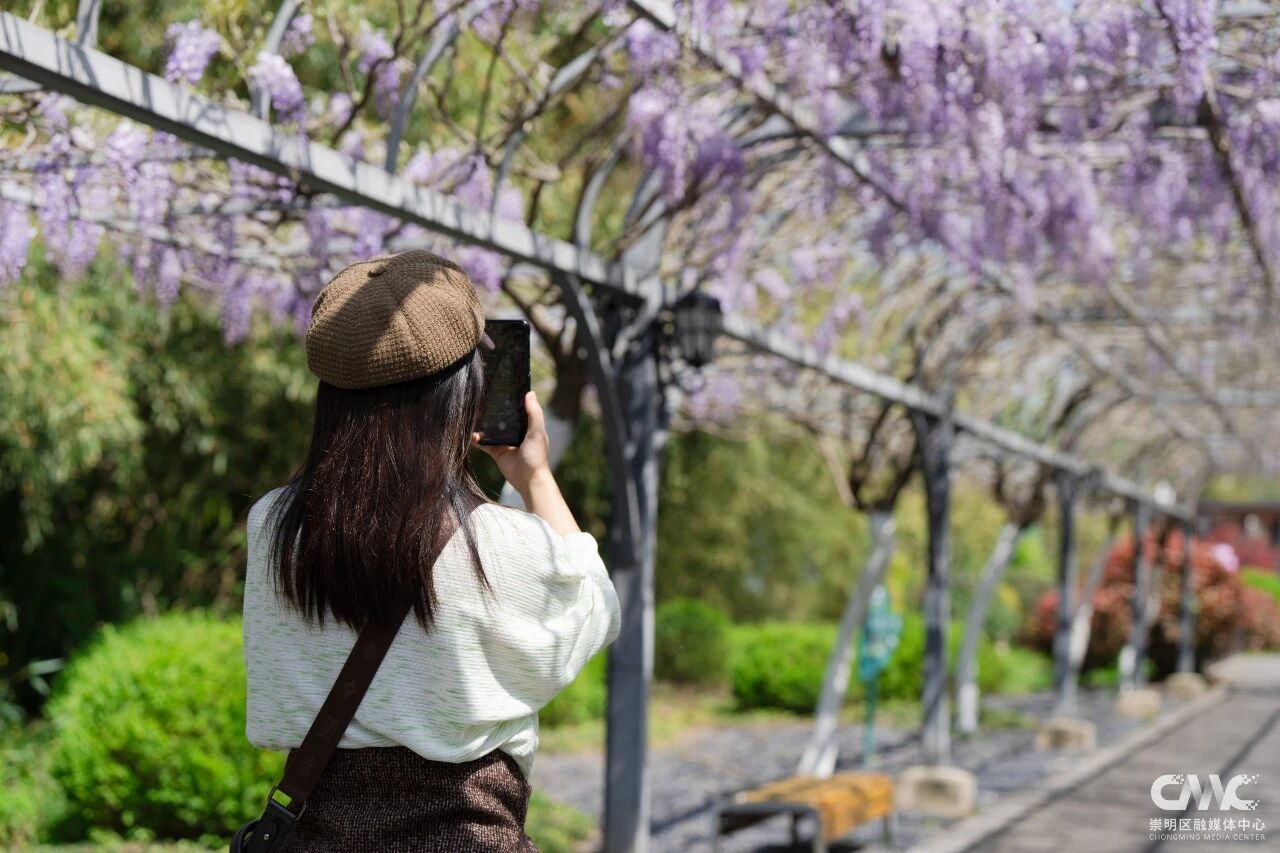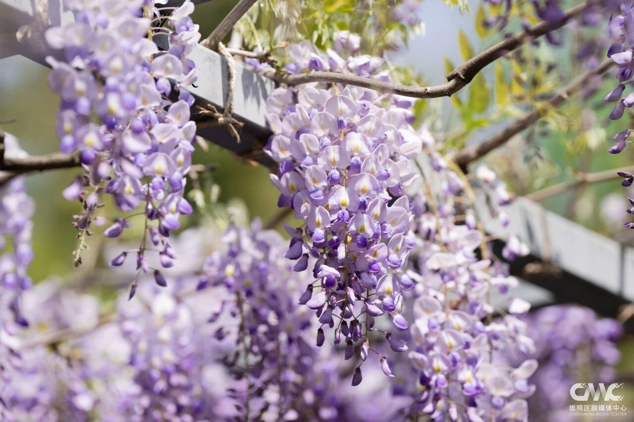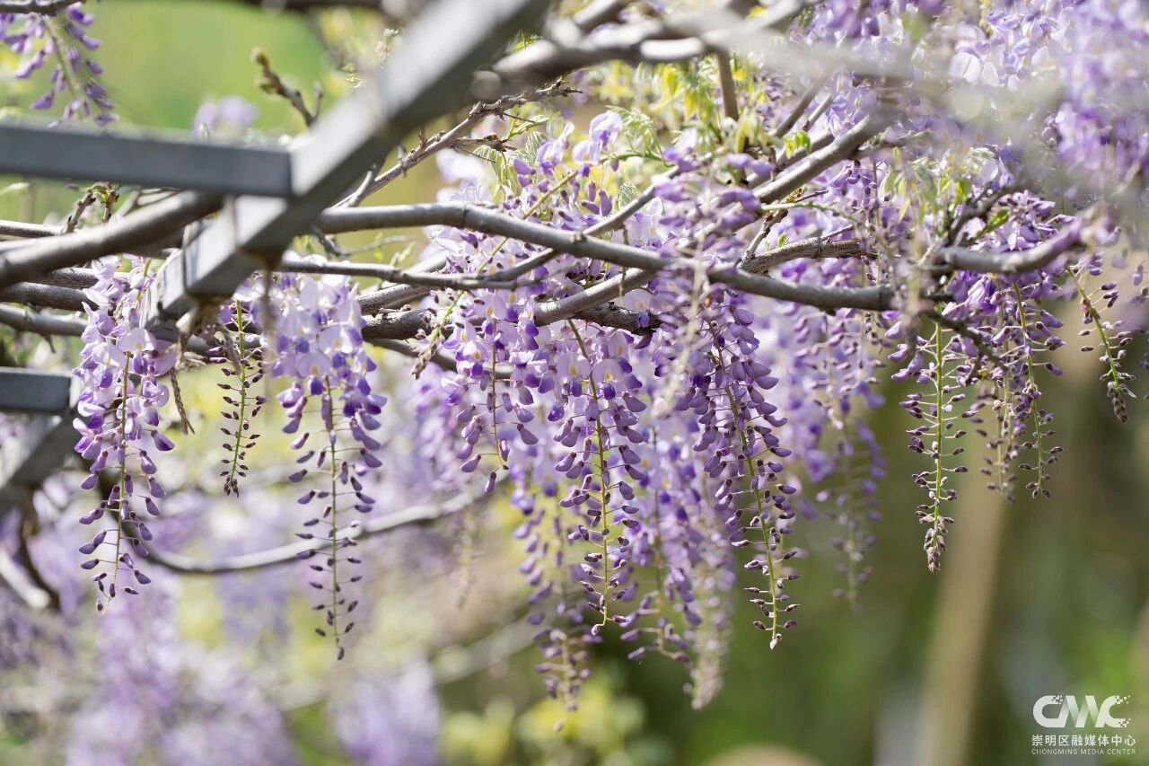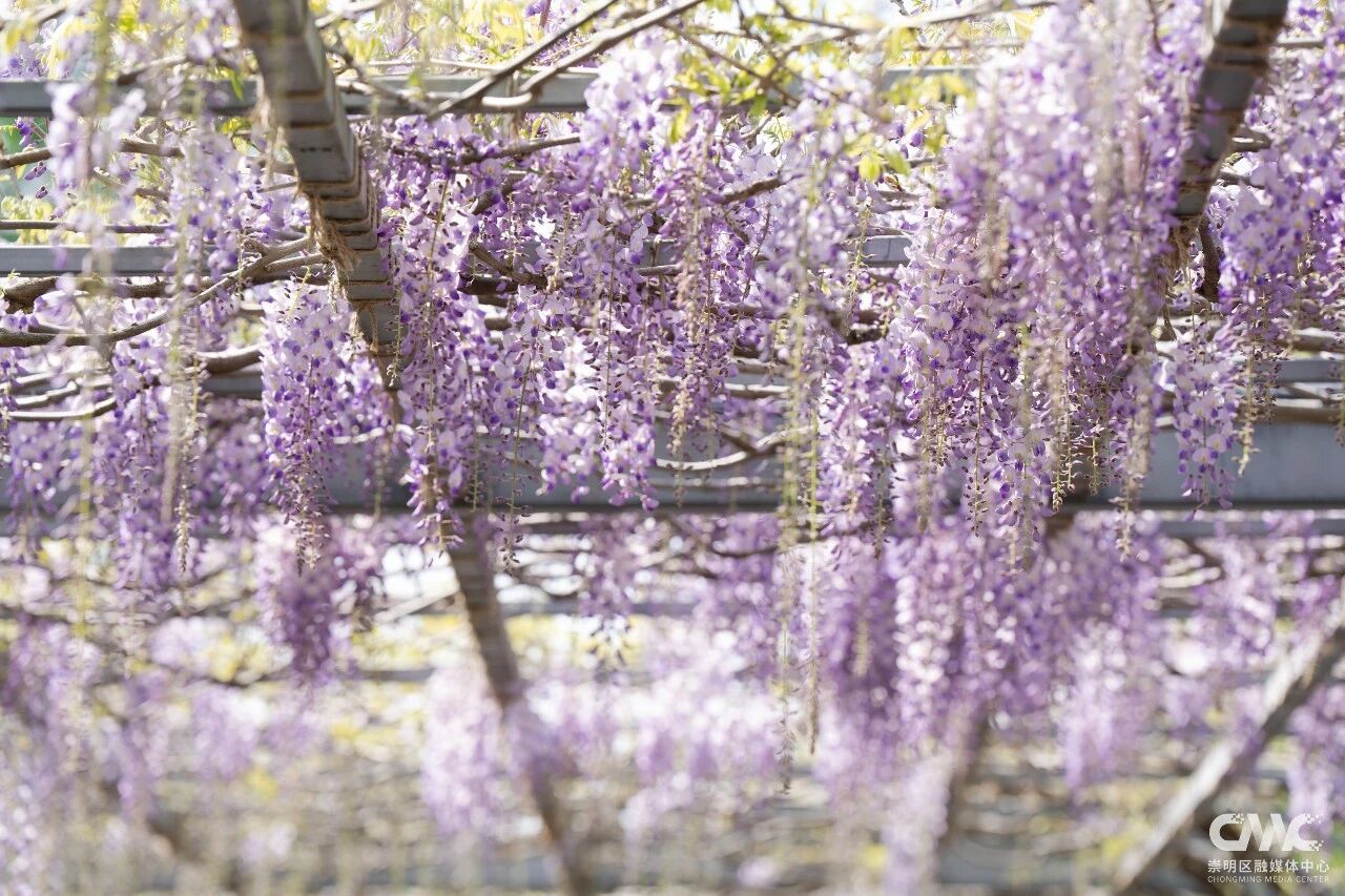 目前这片紫藤花初绽芳华,预计4月20日前后进入盛放期,观赏期将持续至5月初。今年紫藤盛放期间,恰逢2026上海国际花卉节举办(4月18日-5月10日),东平国家森林公园作为分会场之一,还打造了以鼠尾草、大丽花、飞燕草等为主的特色花卉景观,与紫藤花相映成趣。