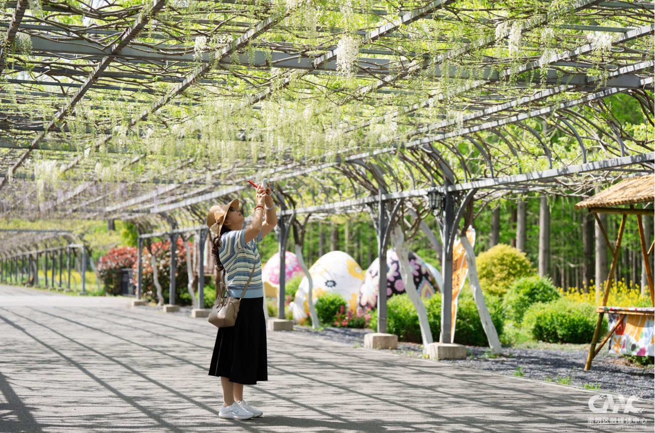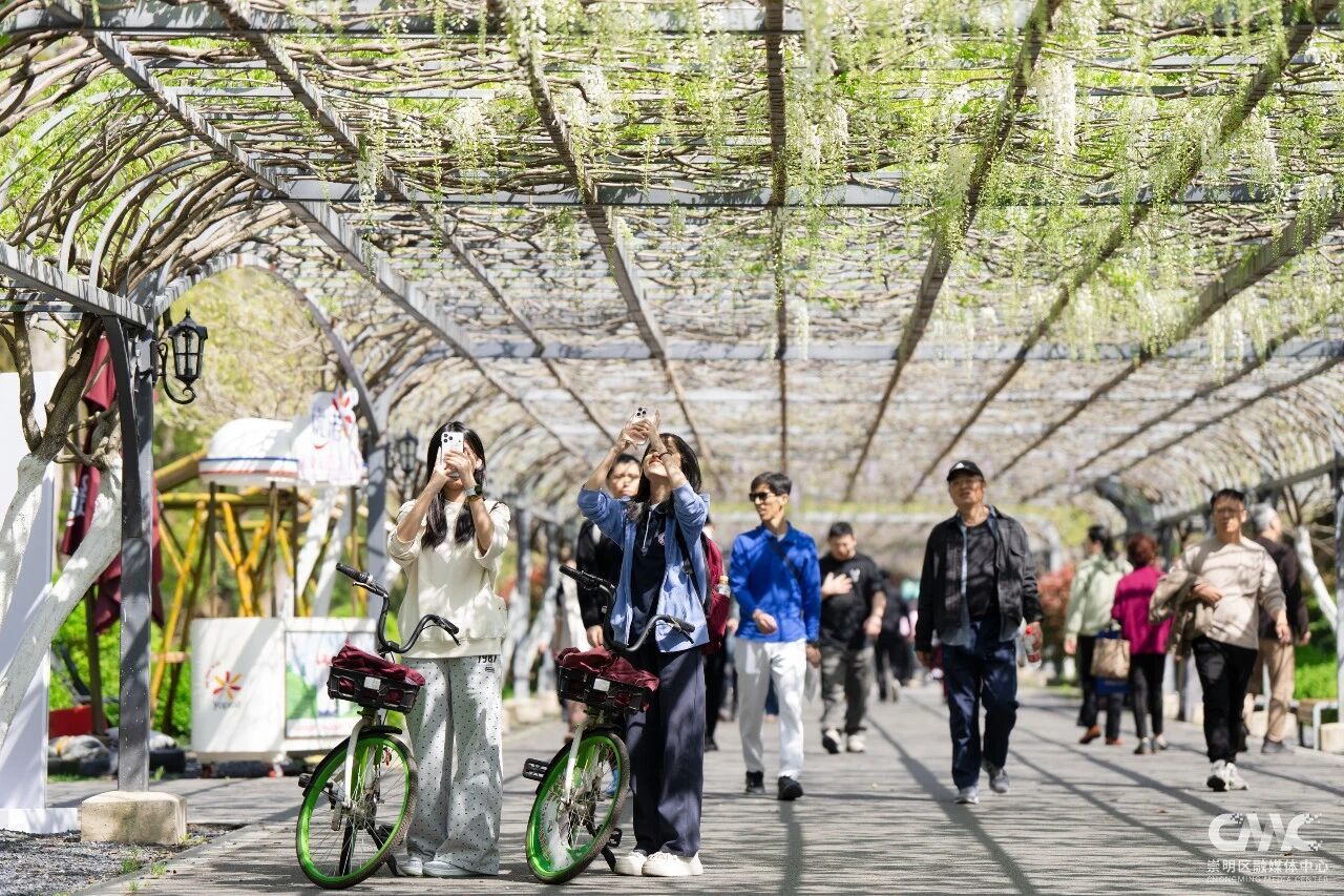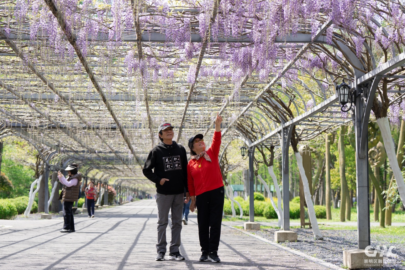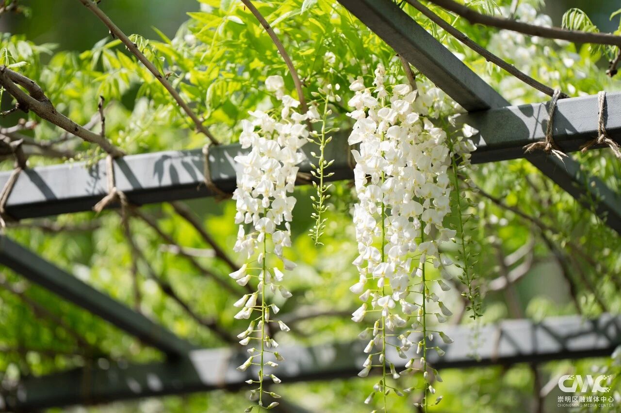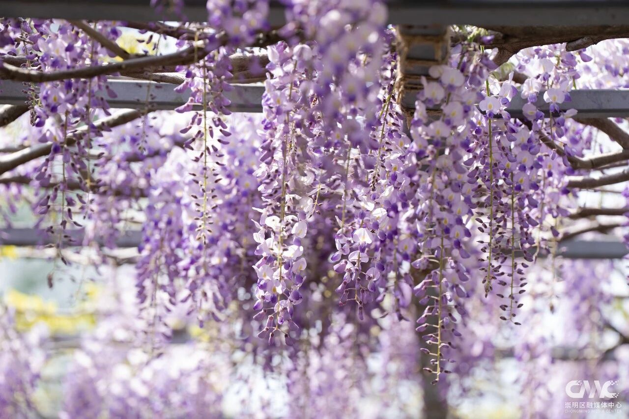 目前这片紫藤花初绽芳华,预计4月20日前后进入盛放期,观赏期将持续至5月初。今年紫藤盛放期间,恰逢2026上海国际花卉节举办(4月18日-5月10日),东平国家森林公园作为分会场之一,还打造了以鼠尾草、大丽花、飞燕草等为主的特色花卉景观,与紫藤花相映成趣。