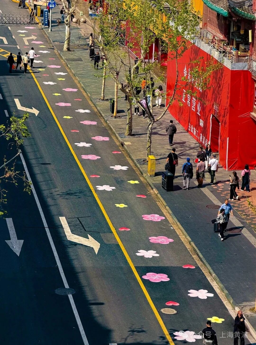 抬眼是老街巷的熙攘温情,低头是春天的浪漫仪式感。每一步都踩在花瓣上,每一帧都像走在画里。