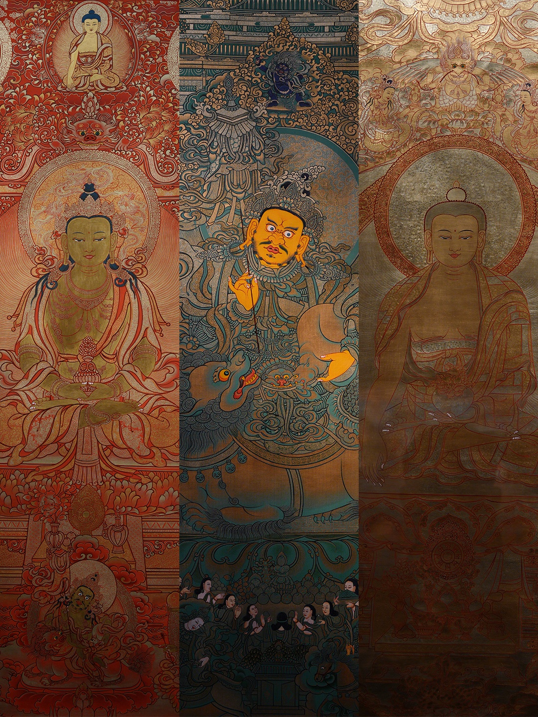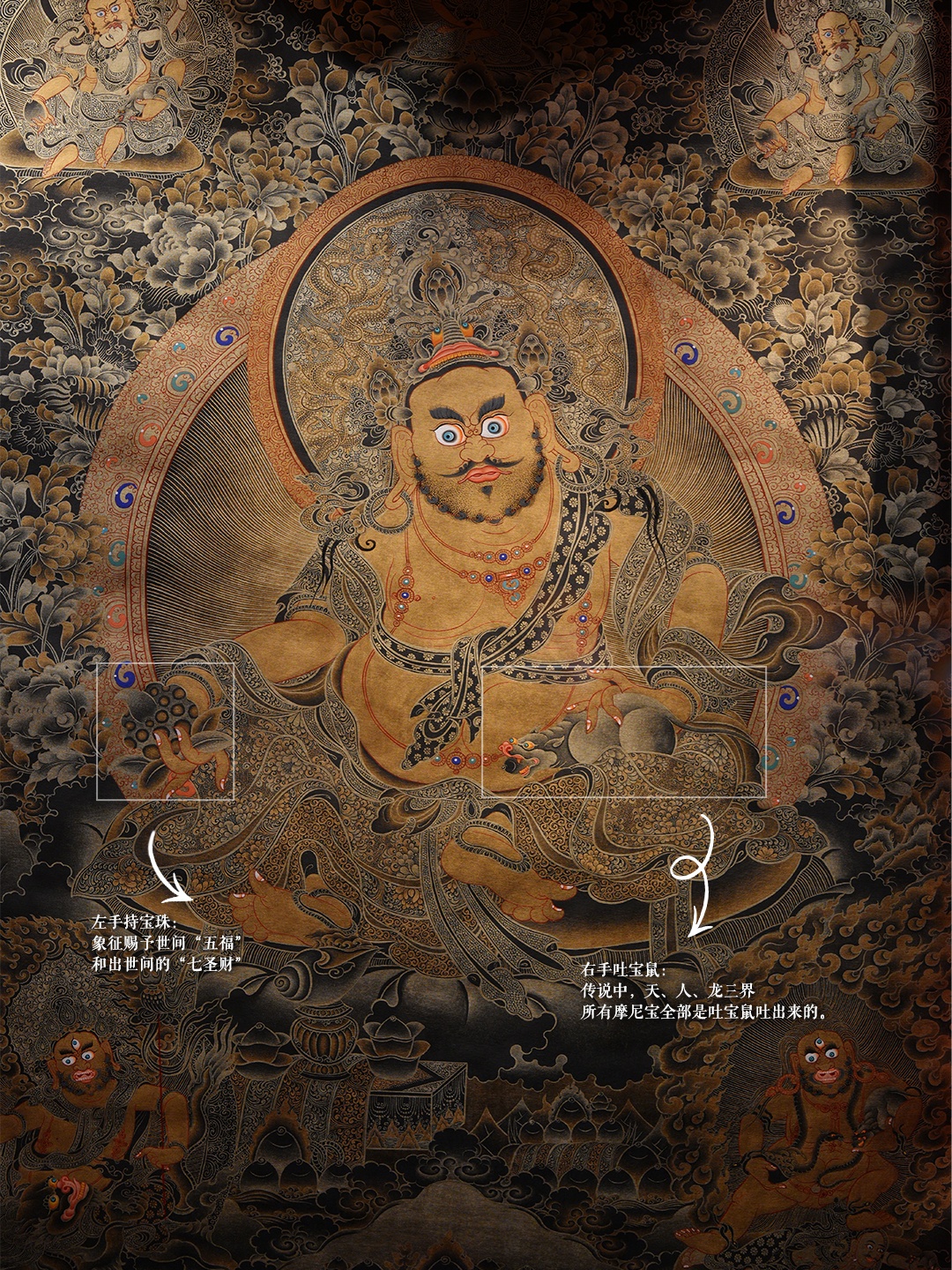 走进唐卡展厅感受藏族艺术慢慢欣赏美丽的人还真不少 在独立小展厅前排起了队伍原来都在围观唐卡作品中的“财神” 沾沾财气高人气唐卡拓展介绍——别看名字叫财神其实掌管的范围很大 地位可高是位早已修证五道十地的大菩萨在藏传佛教艺术的丰富宝库中拥有极为重要的地位和广泛的象征意义唐卡中黄财神形象遍体金黄、身着天衣右手持满愿摩尼宝珠左手轻抓吐宝鼠,鼠口中常衔宝珠,象征财富源源不断右脚踏一只白色吉祥海螺,象征能入海取宝展内20+唐卡珍品 线下看细节超多在上海,邂逅高原唐卡之美上海市历史博物馆「妙涵万象——传统唐卡艺术展」3.27—6.21有缘千里来相遇#上海在这里 #上海在这历 #上海市历史博物馆 #唐卡展 #非遗唐卡 #唐卡艺术 #藏地文化 #今日是看展人 #上海免费看展 #上海周末去哪儿 #人民广场展览