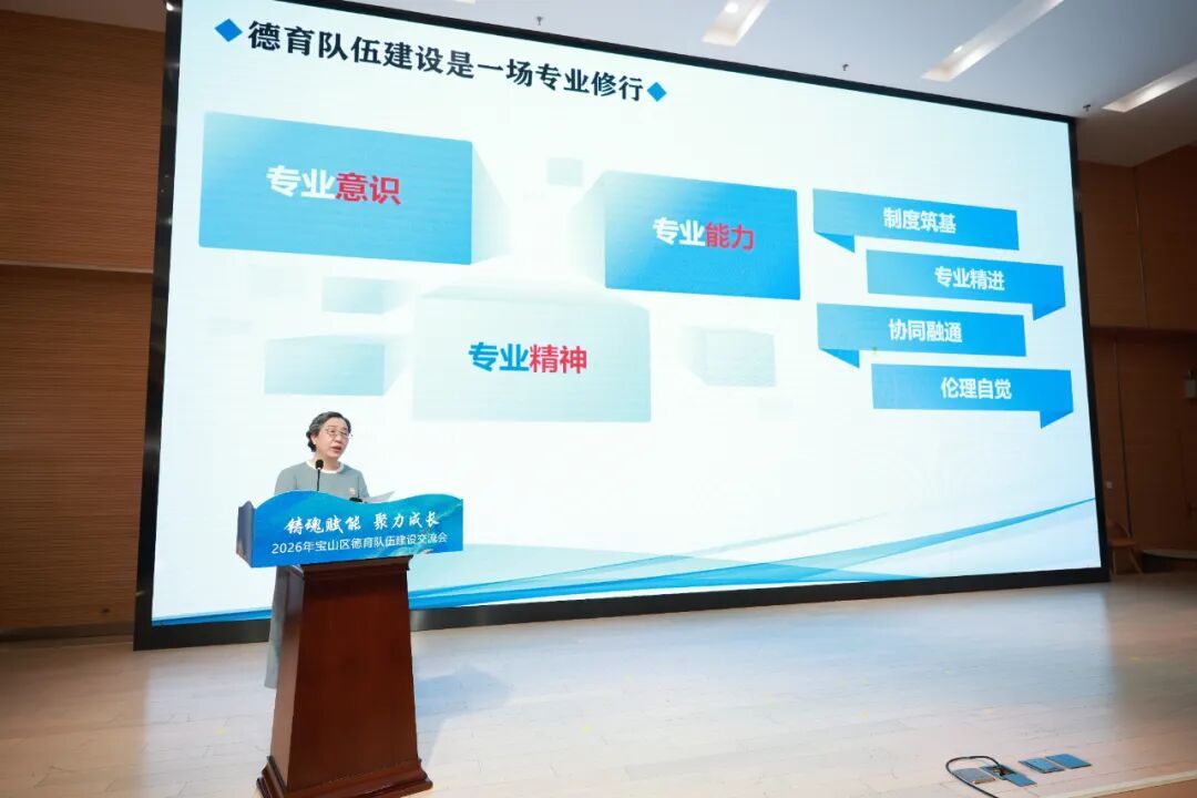 4月15日,2026年宝山区德育队伍建设交流会在宝山区教育学院举行。这场以“队伍的合力”为主题的会议,试图回答一个问题:当德育工作越来越复杂、越来越需要协同作战时,宝山是如何为这支队伍“织”起一张网的?
