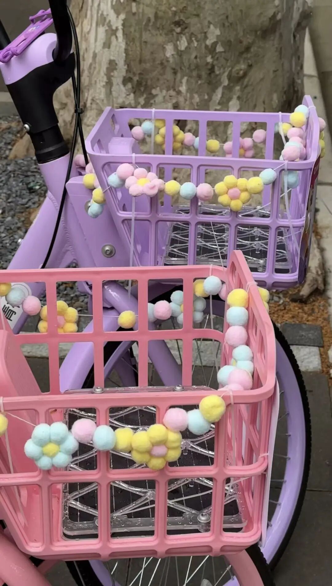 青桔单车这次直接拿捏少女心,粉、紫双色车身搭配“软fufu”的毛球小花装饰,车筐缠绕粉、黄、蓝三色绒球小花,骑行时花瓣随风轻晃,春日氛围感直接拉满!