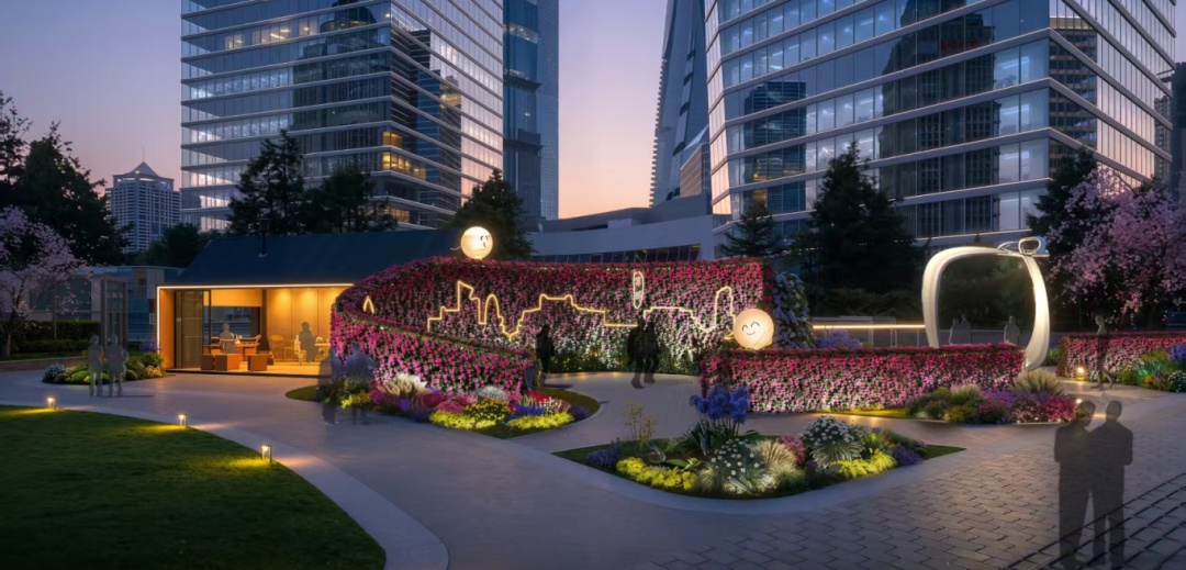 陆家嘴中心下沉广场“春漾花谷”主题装置效果图