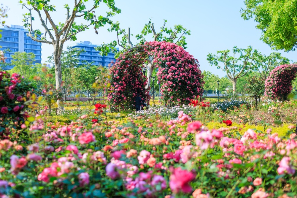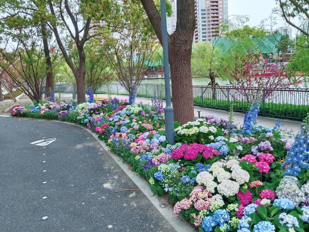 花卉节限定小火车带您穿行前滩滨江,沿途尽览 1.5 公里绣球花道、喜林草花海之丘、月季园等特色景观,沉浸式感受滨江花海盛景。