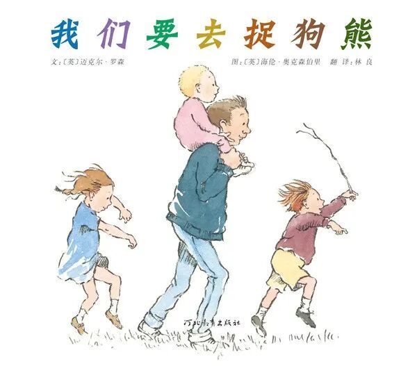 1989年出版的《我们要去捉狗熊》(We're Going on a Bear Hunt)是罗森最著名的代表作。这本绘本改编自一首美国民谣,讲述一户人家趁好天气去捉狗熊却遭遇危险的故事,文字朗朗上口,韵律十足。
