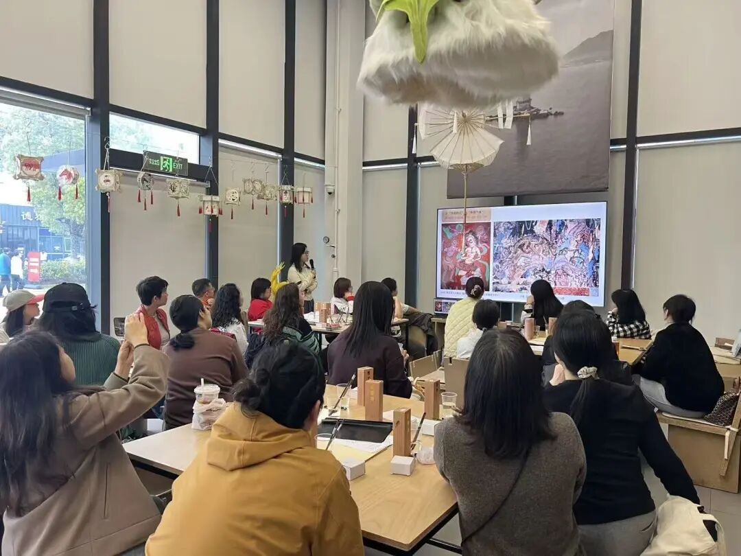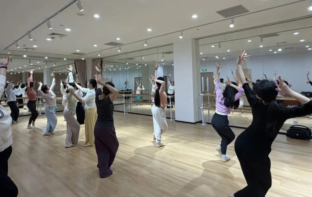 《敦煌舞》未开先火。这门课程深度还原敦煌壁画中的灵动舞姿,手把手带领学员沉浸式感受千年美学,开课即满员,热度持续攀升。开课当天,学员们早早抵达教室,满怀期待。“每次来杨浦文化艺术中心,都会被大厅的敦煌壁画吸引,一直对敦煌文化满心向往。第一堂课全是干货,真让我收获满满!”学员徐女士说。