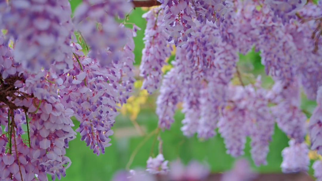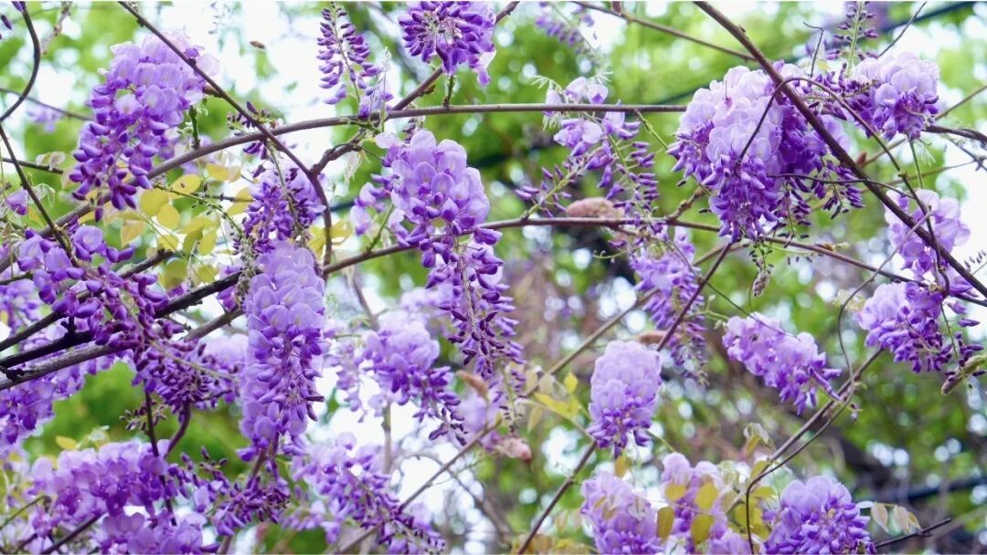 春深四月 紫藤如约绽放 宝山的河畔、步道、长廊间 一串串紫穗垂挂如瀑 似璎珞流苏,随风轻摇 盛开之处 总有行人为之驻足 经过连日细雨的浸润 这份春日限定的“紫色浪漫” 已然加载至80% 罗泾的紫藤花观赏点错落分布 有的攀附村屋 一串串蝶形小花自高处倾斜而下 为建筑披上梦幻衣裳 有的绕花架垂悬 串联起一条浪漫氤氲的紫色长廊 有的野蛮生长 花开如茵 站在其下 仿佛接住了一整个春天 在宝山区的永清公园 藏着一片临水而生的紫藤花瀑 老藤虬曲缠绕 紫花串串垂落湖面 倒影成双绝美 人超少 独享整片紫色浪漫 清风拂过花香满溢 串串紫色花穗相互交织 勾勒出一幅明媚的春日图景 独属于紫色的浪漫与诗意 在此刻无限蔓延 -紫藤花观赏点- 宝虹家园 地址 | 宝山区陈川路555弄 观赏点位 | 东南门陶家河步道 宝通家园 地址 | 宝山区箫月路166号 观赏点位 | 35号楼东面附近广场 海星村 地址 | 宝山区罗泾镇里河塘路附近 观赏点位 | 沪宝采摘园西南70米 新陆村 地址 | 宝山区罗泾镇新陆村楼下宅 观赏点位 | 洋新路附近 永清公园 地址 | 宝山区双城路490号 观赏点位 | 河边紫藤树 紫藤花的最佳观赏期约持续两周 眼下正是赏玩的好时机 快用镜头留住这抹紫色浪漫 与春天来一场温柔的邂逅吧