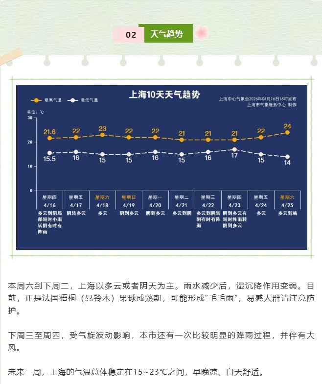 今天早晨沿江沿海地区有雾。出行注意交通安全。今天上午雨止转阴到多云。东南风转偏北风3~4级,沿江沿海地区4~5级,气温在16~22℃之间。相对湿度95%~55%。体感依旧舒适。