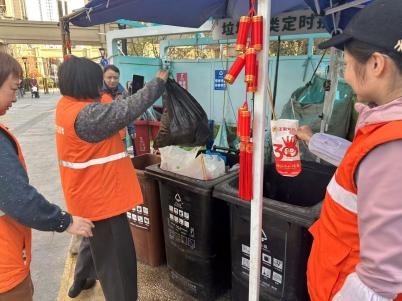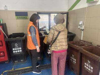 同时,充分发挥党员先锋模范作用,党员志愿者主动坚守垃圾投放高峰时段,现场开展分类指导,耐心解答居民疑问,及时纠正混投、错投等不规范行为。此外,工作人员对小区垃圾箱房及各类垃圾桶进行全面冲洗、消毒,有效遏制细菌滋生,进一步优化投放点环境卫生条件,提升居民分类投放的舒适度与满意度。