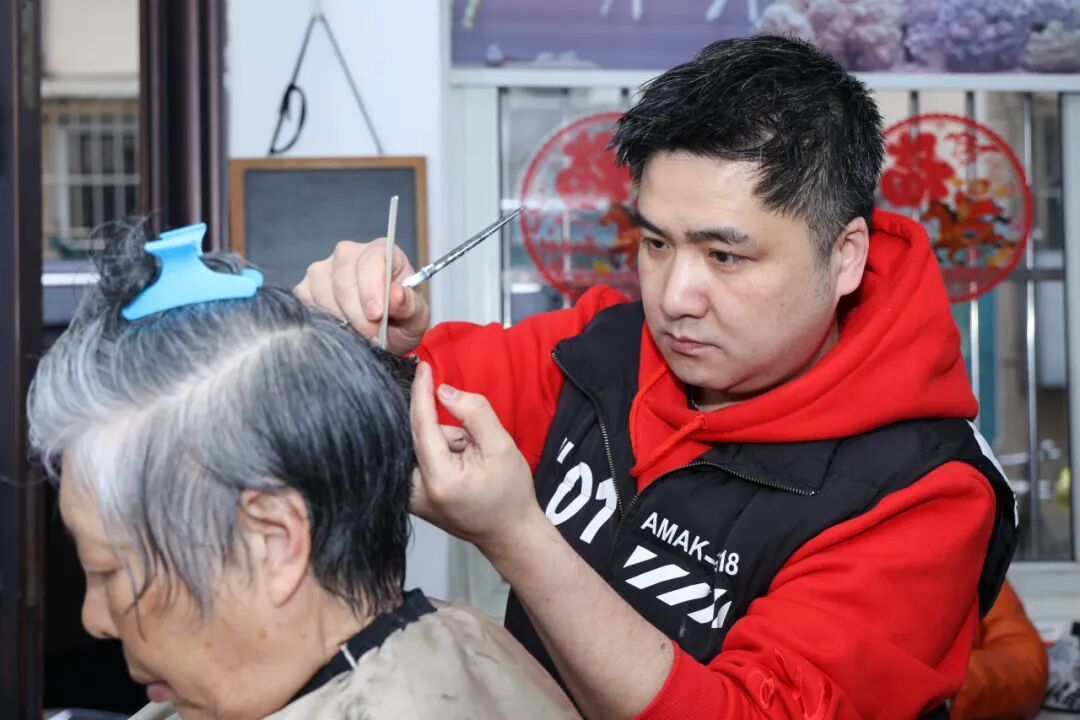 在临汾路街道岭南路270弄小区,有一间不起眼的社区理发店,这里不仅是居民打理发型的便民场所,更是充满烟火气与人情味的公益小屋。
