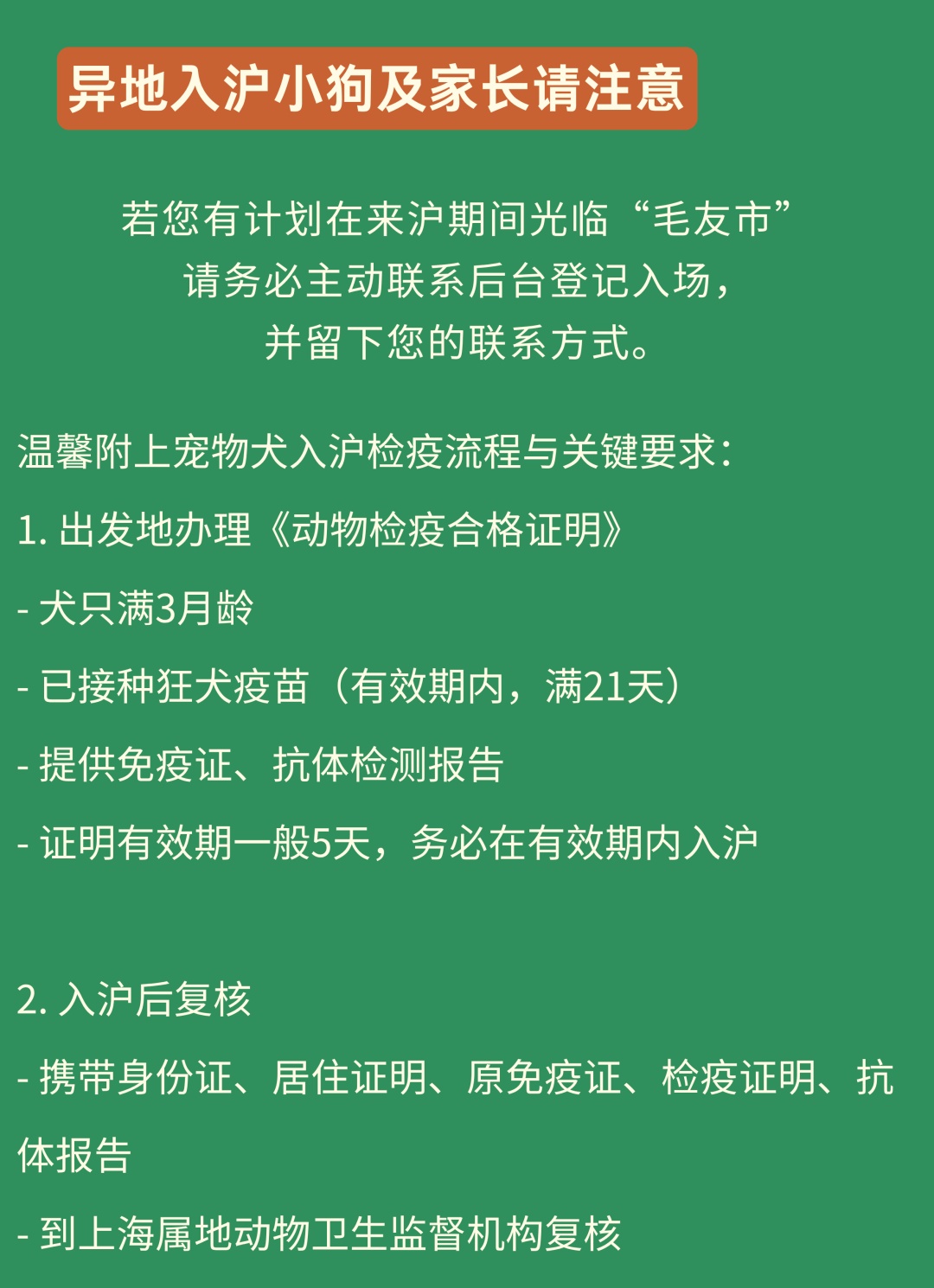 1.本次活动暂不接待未免疫未办证犬只及城市禁养犬只,可参考《关于本市禁止个人饲养的烈性犬只目录的通告》([沪公发(2011)99号)]。