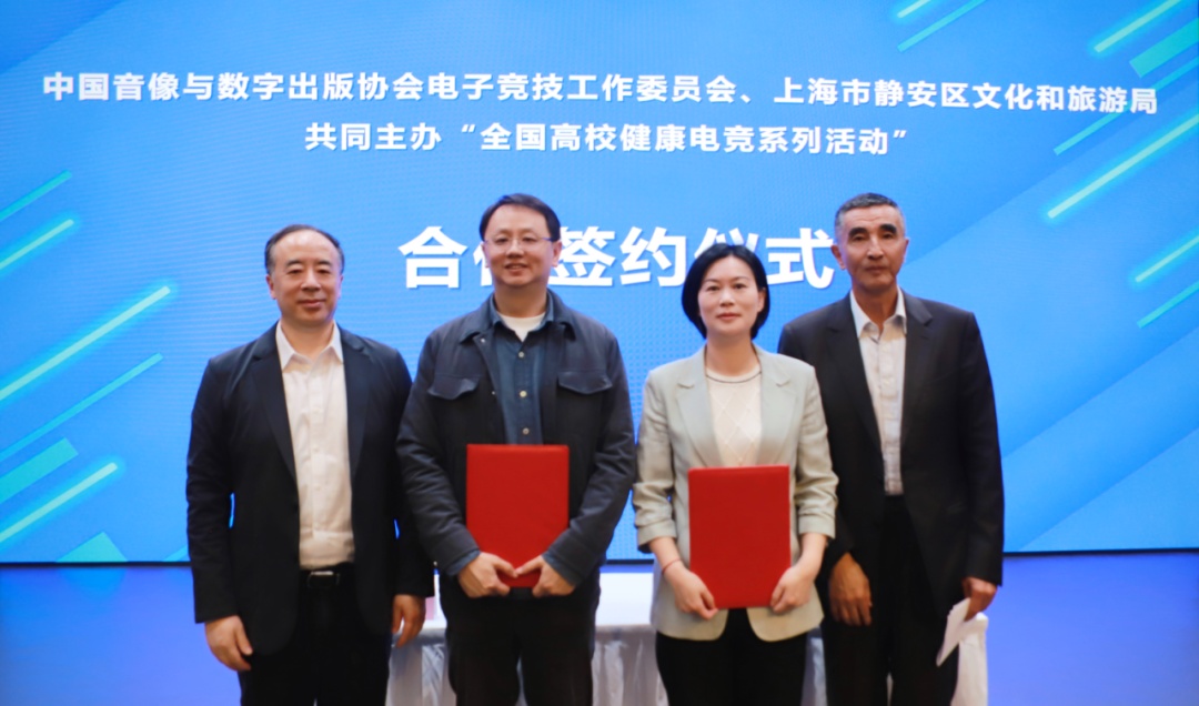 仪式上,中国音像与数字出版协会与静安区文化和旅游局完成全国高校健康电竞系列活动的合作签约。