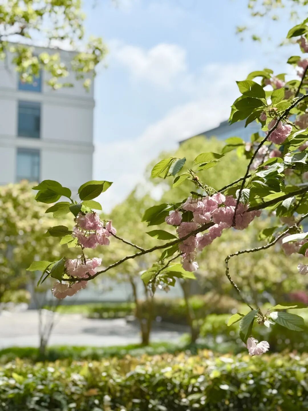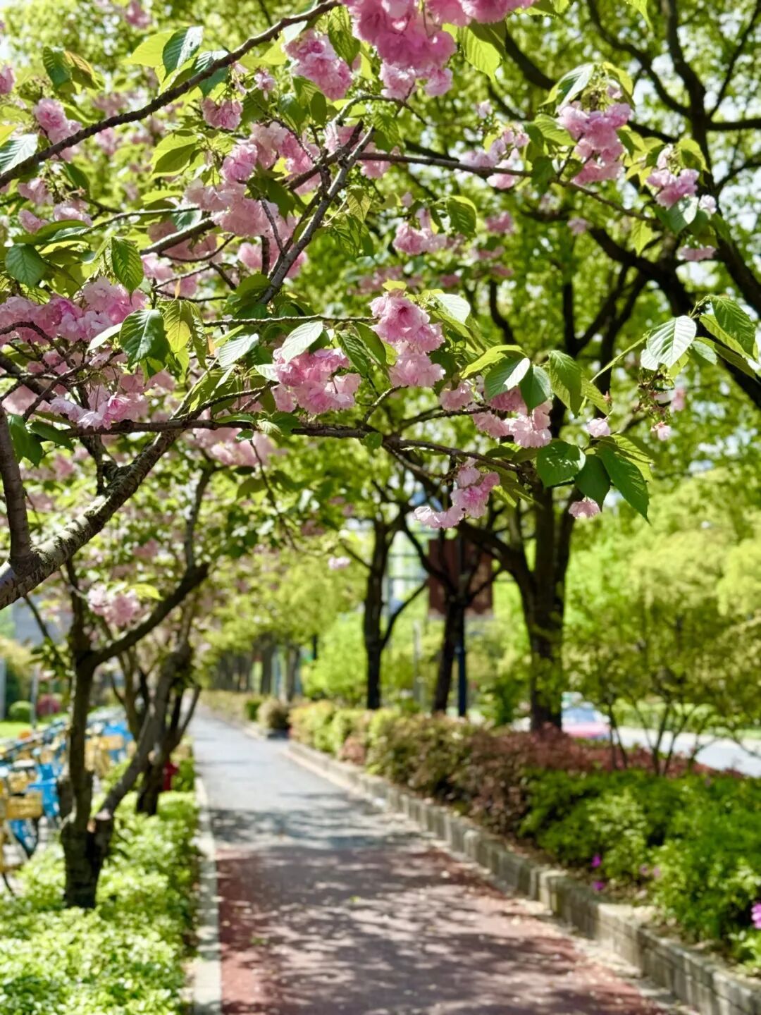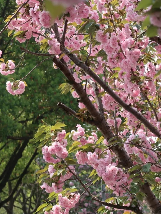 江湾城路的晚樱次第盛放!