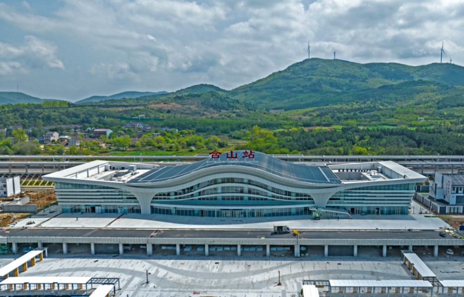 含山站位于马鞍山市含山县环峰镇东山水库上游,距离含山县城8公里。站房建筑面积9980平方米,建筑高度22.2米,为线侧下式站型,主体采用钢筋混凝土框架结构,局部设地下一层,地上一层,屋盖为空间钢网架结构。客流采用下进下出的流线模式,站场规模为2台4线。站房以“钟灵毓秀山水城,臻美含山迎蝶变”为设计理念,运用简洁柔美的建筑形态和贯穿立面的变化曲线,呼应车站周边山水环境,体现“含山、含水,臻善、臻美”的城市口号,整体造型简约富有动感,寓意含山县蒸蒸日上。