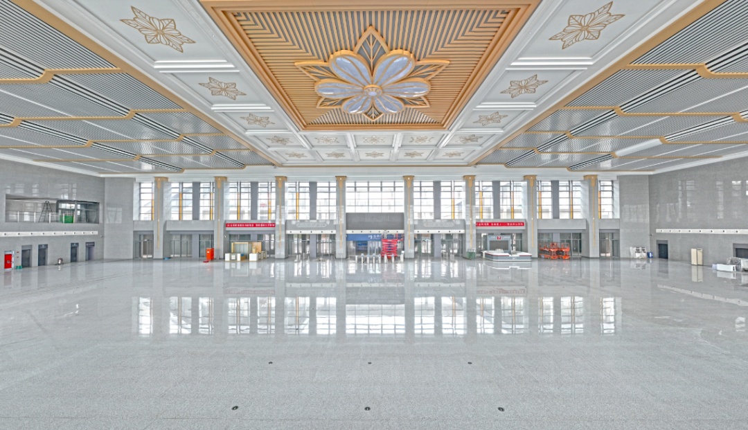 为打造精品站房工程,项目代建单位宁安铁路有限责任公司会同中铁电气化局等参建单位,按照“创新融合、集约适度、智慧便捷、绿色韧性、人文品质”的新时代站房设计理念,优化站房细部装饰装修方案,强化资源配置与源头管控,倒排工期,将任务细化到周、分解到天。针对钢网架安装、石材铺贴等关键工序,项目引入数字化施工技术实施全过程精度监测,将误差控制在毫米级,圆满完成两座站房的装饰装修。