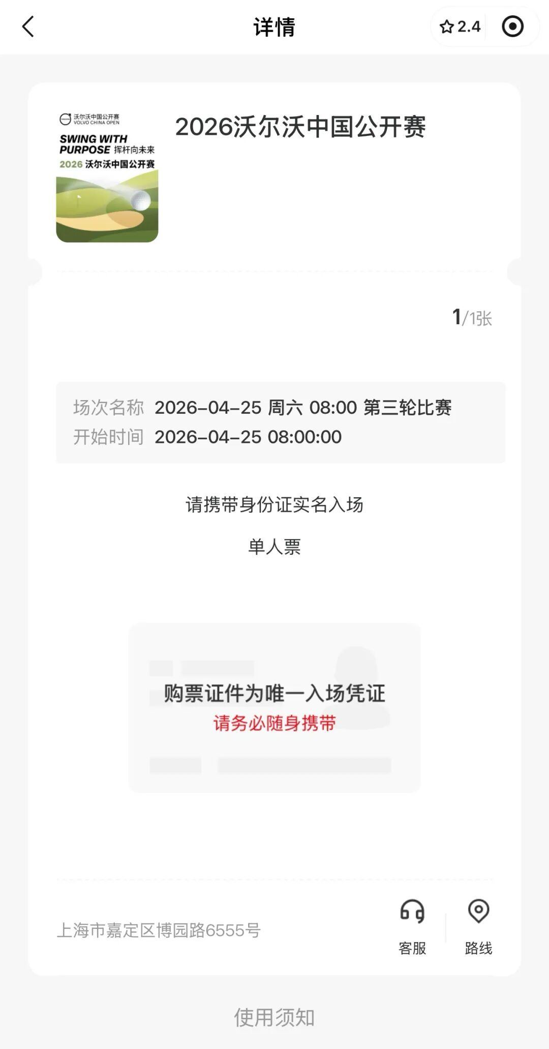 消费者凭对应赛事活动电子票页面