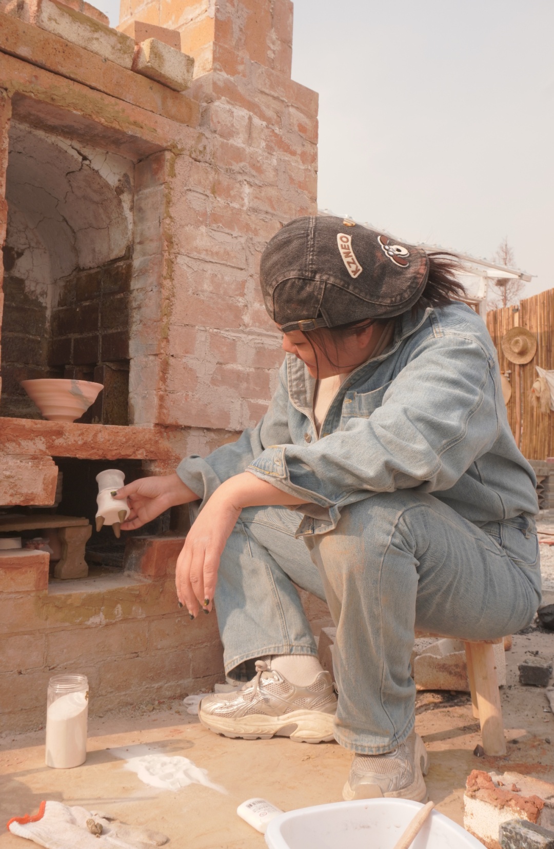 村委被她的诚意打动,全力支持她的想法。如今小院里的柴窑,是她亲手设计、一砖一瓦盯着建起来的。她笑着跟我说,开窑的那一刻是她最喜欢的瞬间,那一刻所有的辛苦都烟消云散了。“开窑就像开盲盒,有惊喜也有遗憾,可看着陶土在窑火里蜕变成瓷器,那种成就感,什么都比不了。”