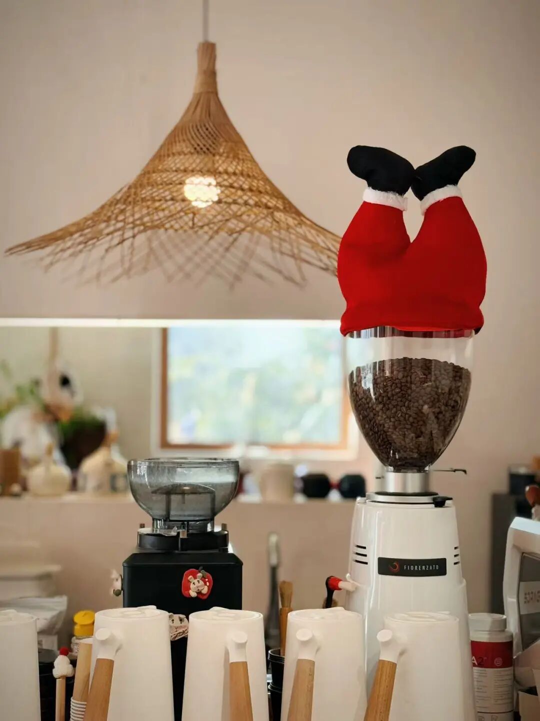 后来和主理人聊起才知道,她深耕儿童美育,这些绘本都是她一本本挑出来的。一旁的装饰树上,挂着青年夜校学员们上课的照片,一张张笑脸迎着光,让屋子里满是烟火气与成就感。顺着台阶拾级而上,二楼是开阔的陶艺体验区,偌大的空间没有丝毫局促感,静待着每一个人把奇思妙想揉进泥料里。店内随处可见熊猫元素,玩偶、抱枕、窑体上的手绘图案,和店名里设计成熊猫图像的“空”字处处呼应,新中式的雅致与乡村的野趣碰撞得恰到好处。