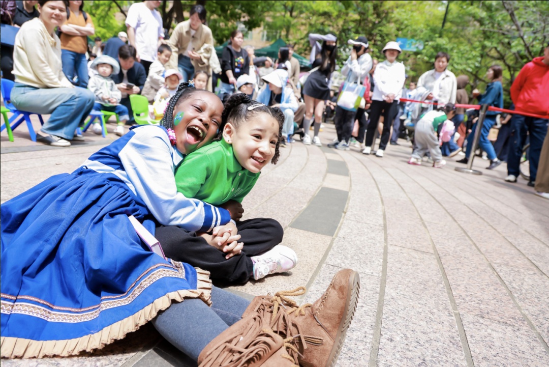 广场之上,来自世界各地的居民驻足交流、沉浸式体验传统文化特色手工、结交新友,不同的语言与文化在此碰撞交融,绘就出一幅多元共生、和而不同的国际社区生活画卷。