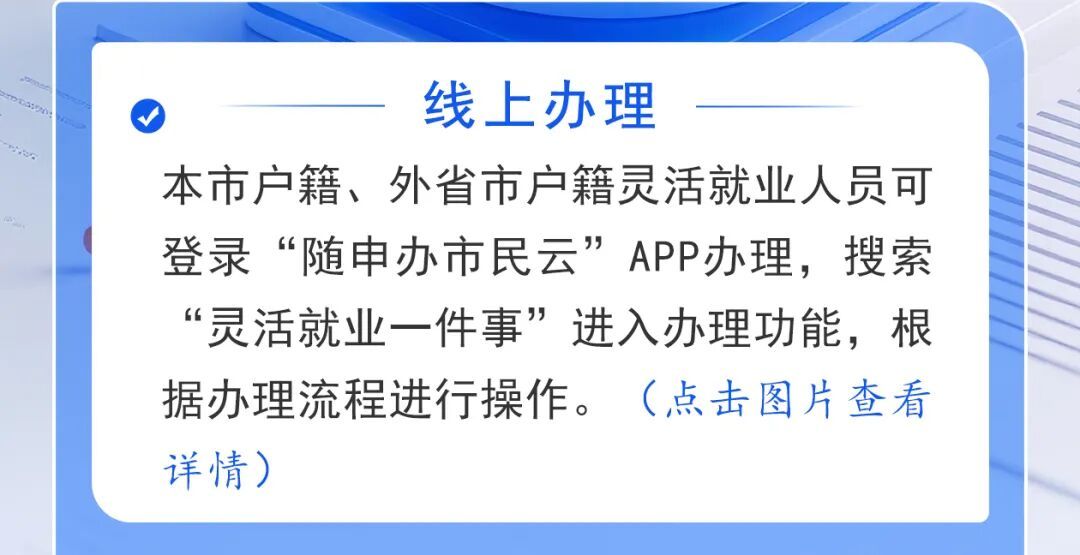 小章可以在本市按灵活就业人员参保,因此想进一步了解,具体如何办理灵活就业参保手续呢?一起来听听解答。编辑:张博宇资料:上海人力资源和社会保障*转载请注明来自上海宝山官方微信