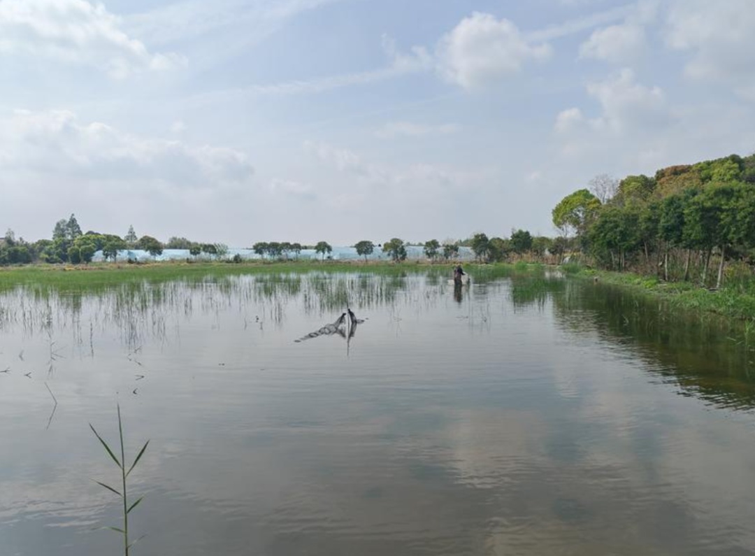 在张堰镇百家村,有一条白玉兰路。路尽头、张泾河边,藏着一片50亩的虾稻共作基地——上海仁滨农业专业合作社。这里没有喧闹的机器声,只有水鸟掠过池塘,晨风拂过稻秧,还有一位常年弯腰在水边的李仁兵。